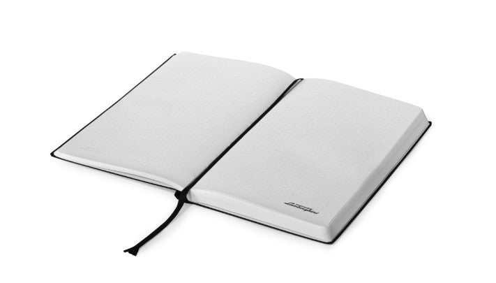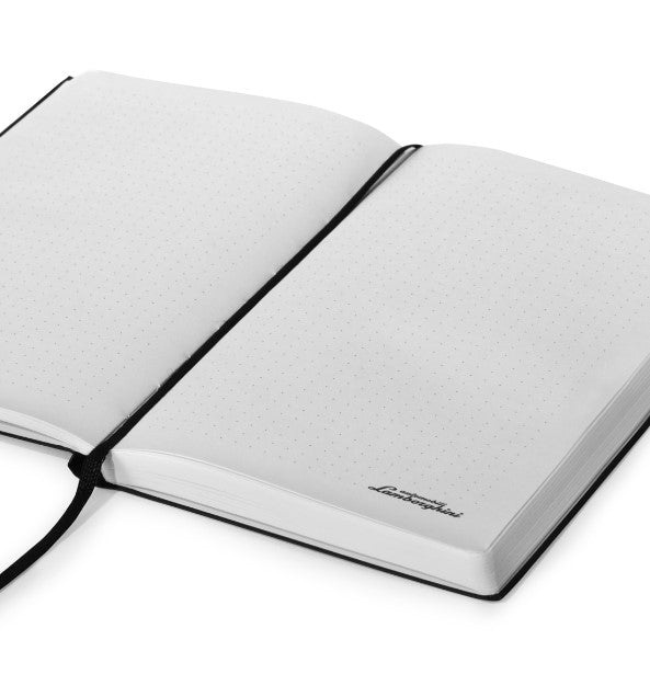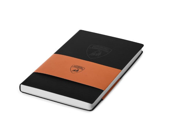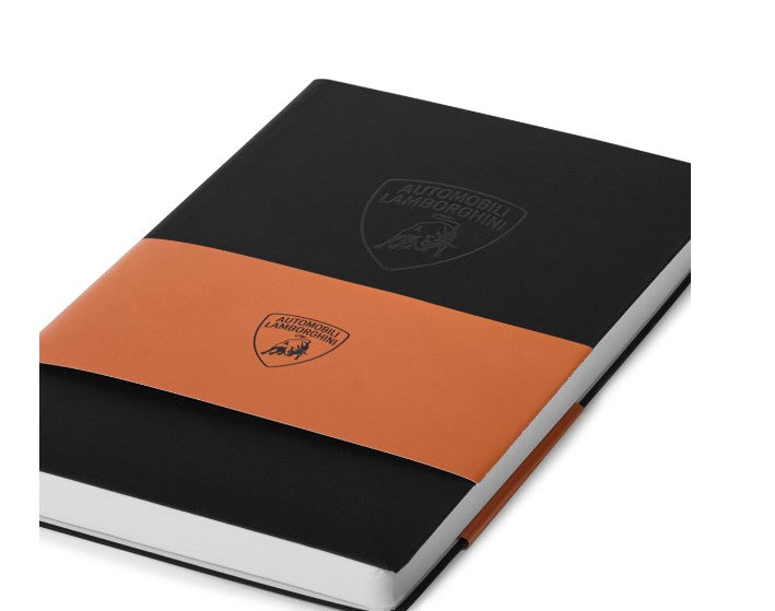 Automobili Lamborghini paper notepad with hard cover, customised with tonal logo shield. A5 format - Dimensions: 13x21 cm - 240 pages.