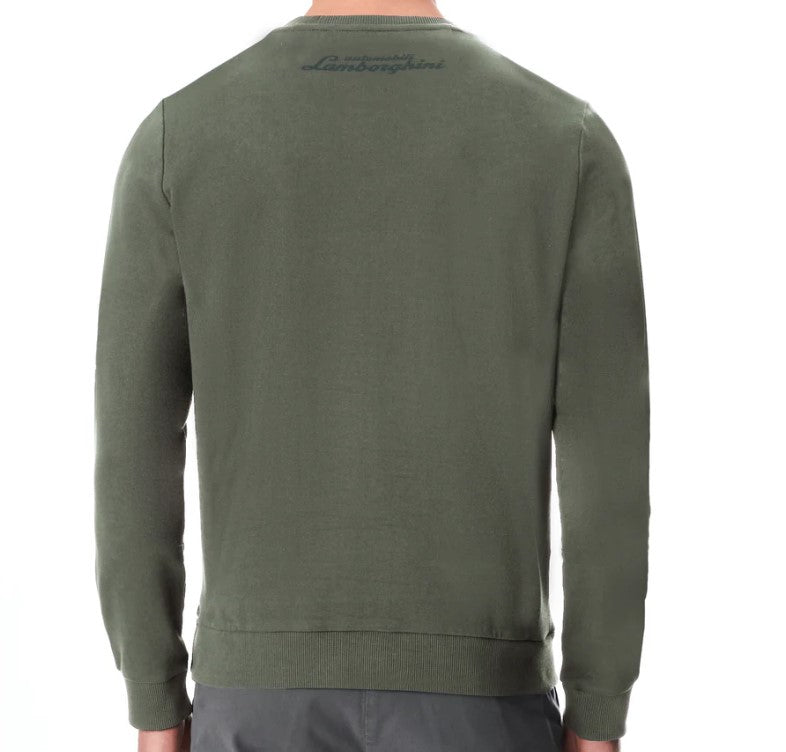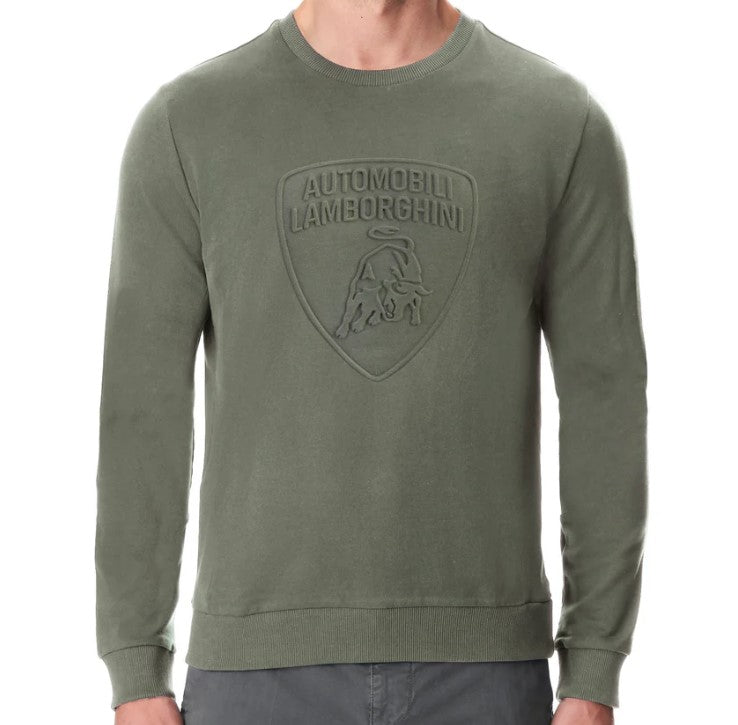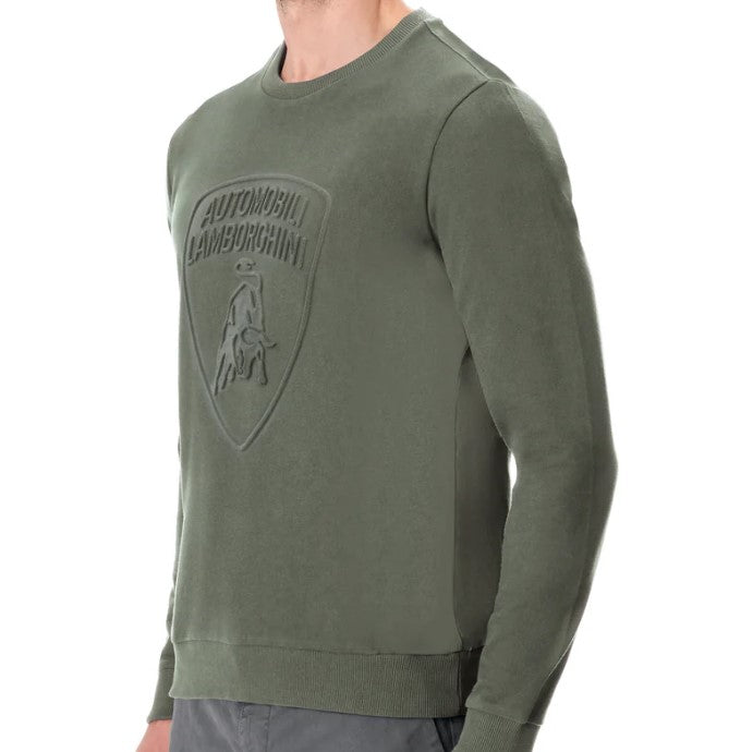 Automobili Lamborghini Crew Neck Sweatshirt With Embossed Shield Logo - ARMY GREEN